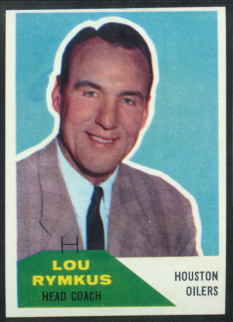 A former player under the legendary Paul Brown, Lou Rymkus, led the Houston Oilers to an AFL championship in 1960. The championship provided Rymkus with an extra degree of satisfaction because it came over a Chargers team coached by his arch-nemesis, Sid Gillman. No one is exactly sure how the feud began, but it stemmed from the days when Rymkus was an assistant coach on Gillman’s Los Angeles Rams team. The two nearly came to blows one day in 1959, and despised each other since. Despite the 1960 championship, the team’s slow start in 1961 and Rymkus’ outspoken criticism of the Oilers’ owner, Bud Adams, resulted in his dismissal as head coach early in the 1961 season.